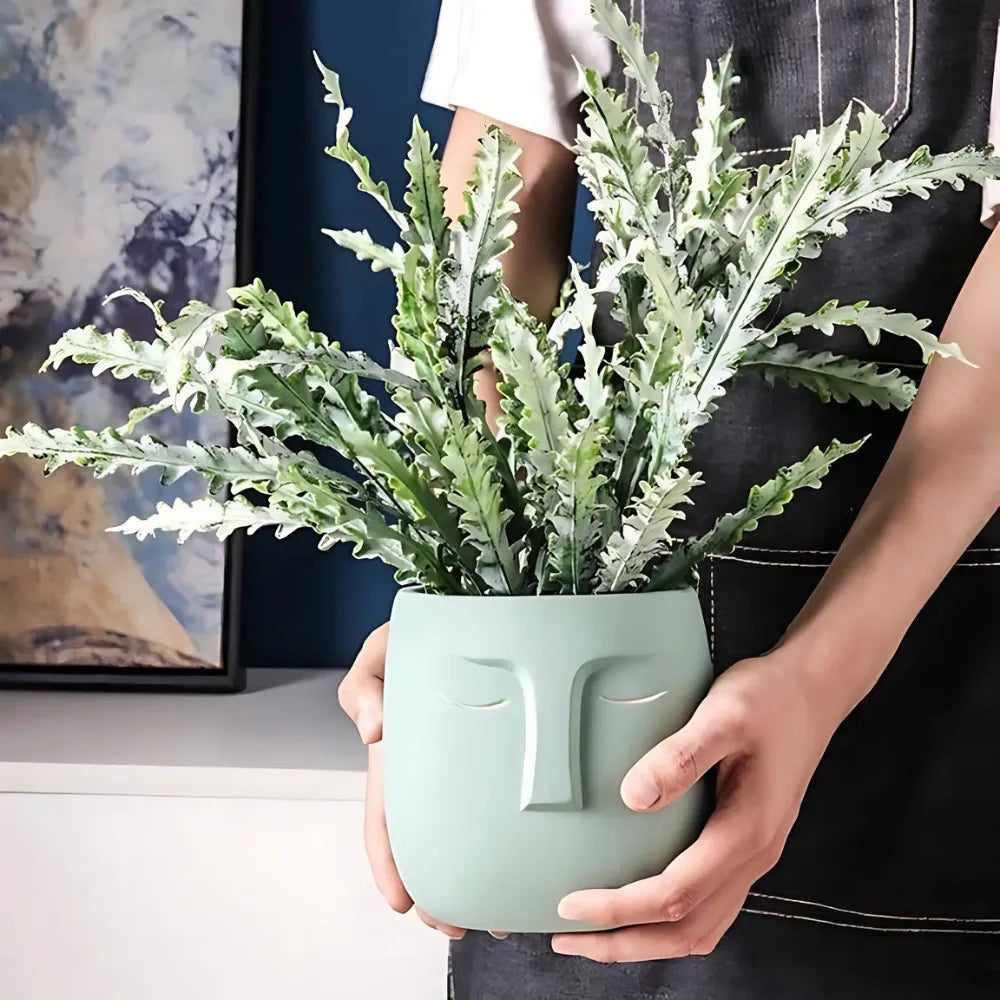 Este vaso abstrato permite que suas plantas “virem o penteado” do rostinho em repouso. Divirta-se podando folhagens para criar “cortes de cabelo” únicos, deixando a decoração ainda mais charmosa e personalizada.